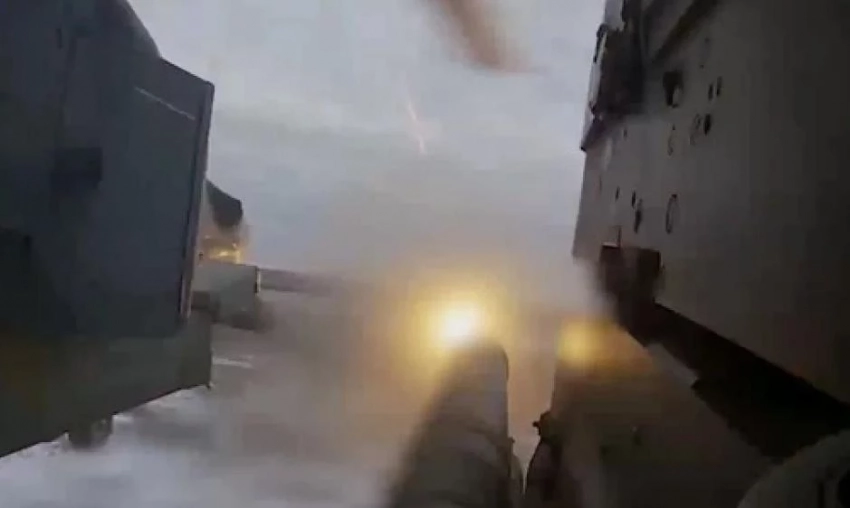 Минобороны РФ показало кадры применения экипажем вертолета Ка-52м легкой многоцелевой управляемой ракеты (ЛМУР) по цели противника в Курской области.