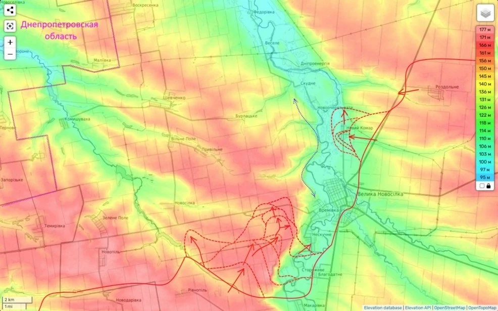 Для обеспечения левого фланга этого удара, наши части вчера, расширяли своё контроль севернее Ровнополя и сумели занять очередной холм и дойти до последней балки перед трассой на Гуляйполе.