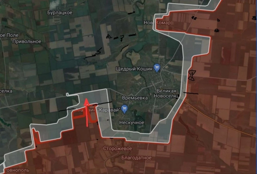 Купянское направление. На данном направлении российские бойцы сумели прорваться. В частности, они атаковали севернее Лозовой с использованием большого количества бронетехники и продвинулись на 3.5 км на рубеже Загрызово - Лозовая.