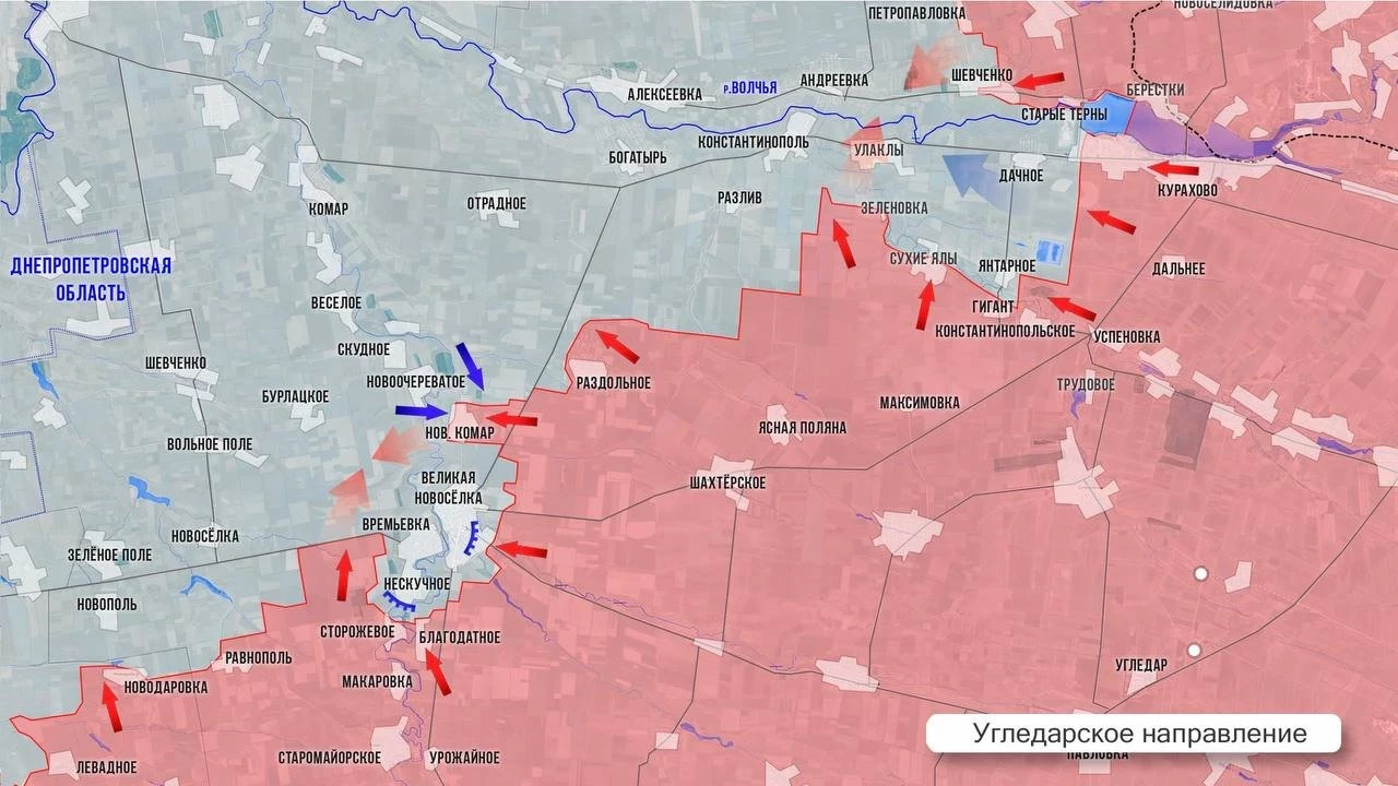 Если смотреть шире, то с освобождением нашими Курахово, ВСУ потеряли контроль над участком Южнодонецкого фронта площадью почти 1,5 тыс. км²: от Селидово на севере до Угледара и Золотой Нивы на юге. ВС РФ теперь имеют мощный плацдарм для старта двух войсковых операций - усиления нажима на Покровск и окружение украинских войск в районе Великой Новосёлки, которая сейчас находится в оперативном окружении.