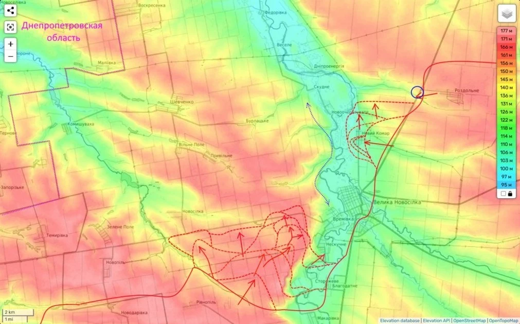 Также продолжаются, как и ранее очень мощные бои в треугольнике Солёная-Нововасильевка, Успеновка. Бои, в виду исключительной важности этого участка идут здесь буквально за каждый дом.