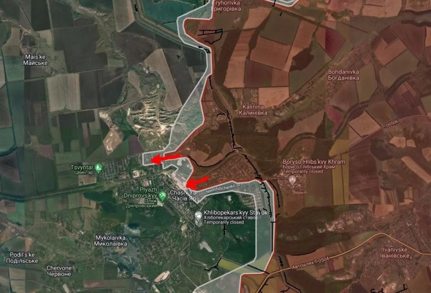 В Нововасильевке ВС РФ продвинулись в северо-западном направлении на глубину до 400 м., на восточной окраине Славянка на глубину до 2.1 км.