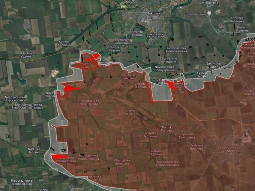 Покровское направление. Российские войска расширили контроль территории в районе Зелёное, Песчаное и Солёное.