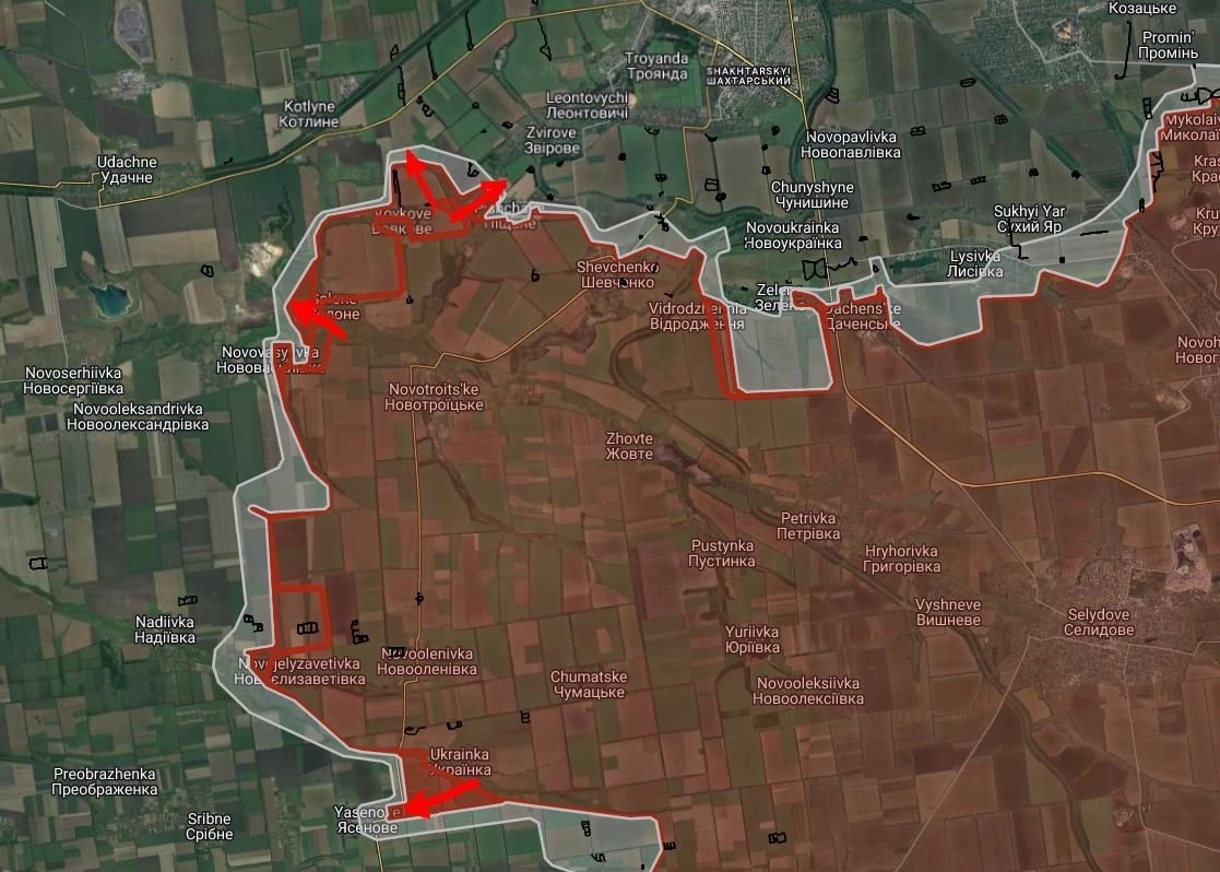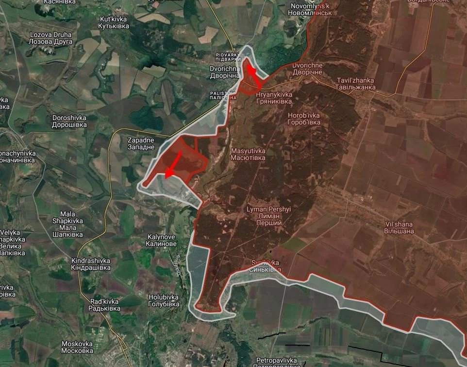 На Покровском: российские войска с опорой на Воздвиженку давят в направлении Барановки.