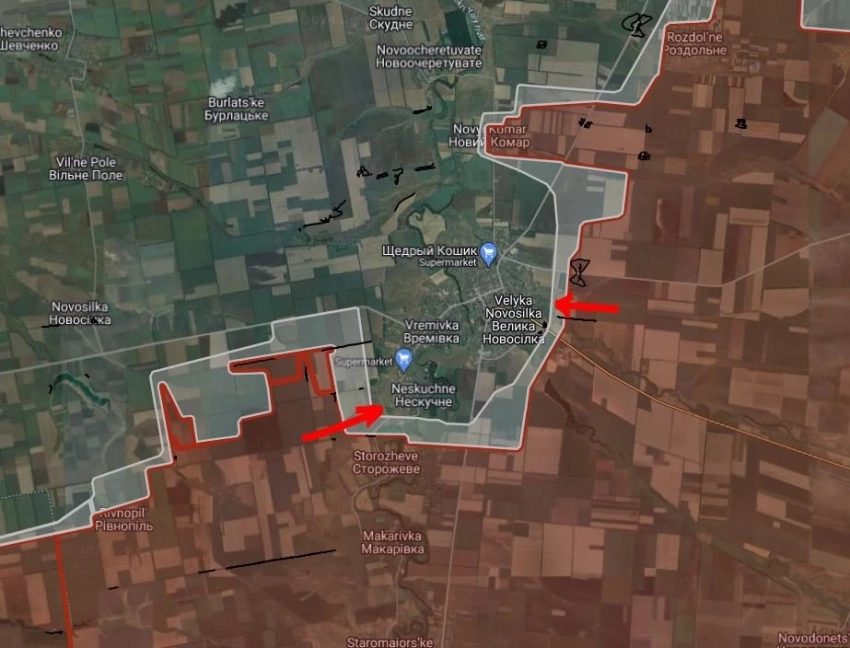 На Великоновосёлковском: российские войска ведут штурмовые действия на окраинах Великой Новоселки.