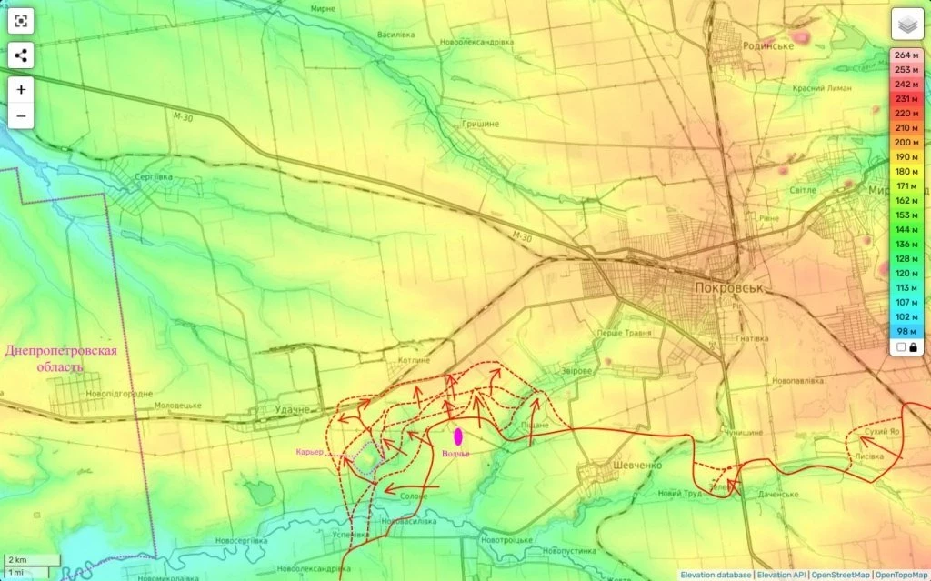 В свою очередь на Покровском направлении наблюдается значительное продвижение российских войск. По словам военного аналитика Юрия Подоляки, накануне удалось добиться существенных успехов, перерезав важную трассу из Межевого на Покровск, а также выйти на окраины двух стратегически важных населённых пунктов - Удачного и Котлино.