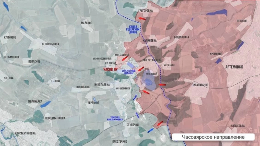 Можно с осторожным оптимизмом говорить о том, что эпичное многомесячное сражение за Часов Яр вскоре придет к своему логичному окончанию - освобождению города-крепости. Украинские ресурсы признают потерю для ВСУ территорию огнеупорного завода - ключевой точки обороны. Бои продолжаются в мкр Северный, где враг пытается отбить территорию ж/д вокзала. Идут бои южнее города в районе трассы на Константиновку. Об этом сообщает Олег Царёв в своём Telegram-канале.