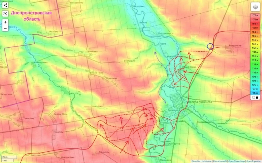 В свою очередь на БольшеНовосёлковском направлении российские части продолжают расширять свое физическое присутствие во все стороны от н.п. Новый Комар. Ранее они держали под контролем только жилую застройку села, имея только узкую дорогу для своего снабжения (и ту под ударами дронов противника). Теперь же идет основательное укрепление и расширение зоны контроля на юг, запад и север.