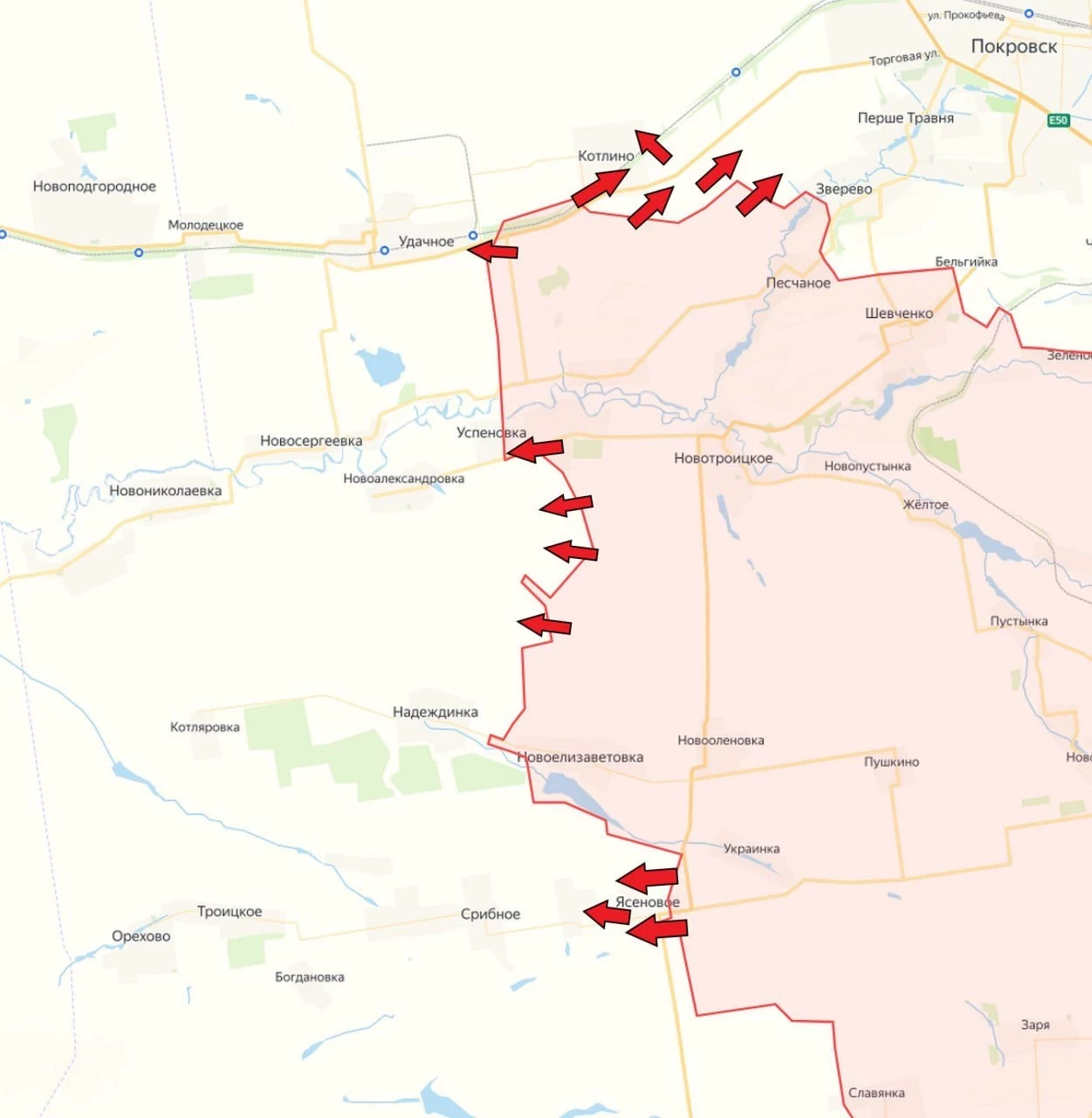 Новопавловское направление (чуть южнее Покровского направления). Подразделения ВС РФ взяли под контроль Ясеневое и продвигаются дальше на запад - бои идут у Новоандреевки.