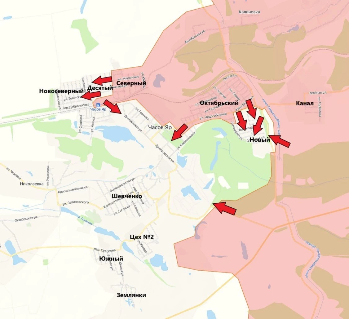 Также отмечают военкоры следующее: Вооруженные силы России продвинулись в центре Часового Яра и заняли позиции в многоэтажной застройке. В процессе этого продвижения они взяли под контроль стадион «Авангард» и осуществили разведку боем в направлении городской больницы №3. Продвижение в центре города составило порядка 1 км.