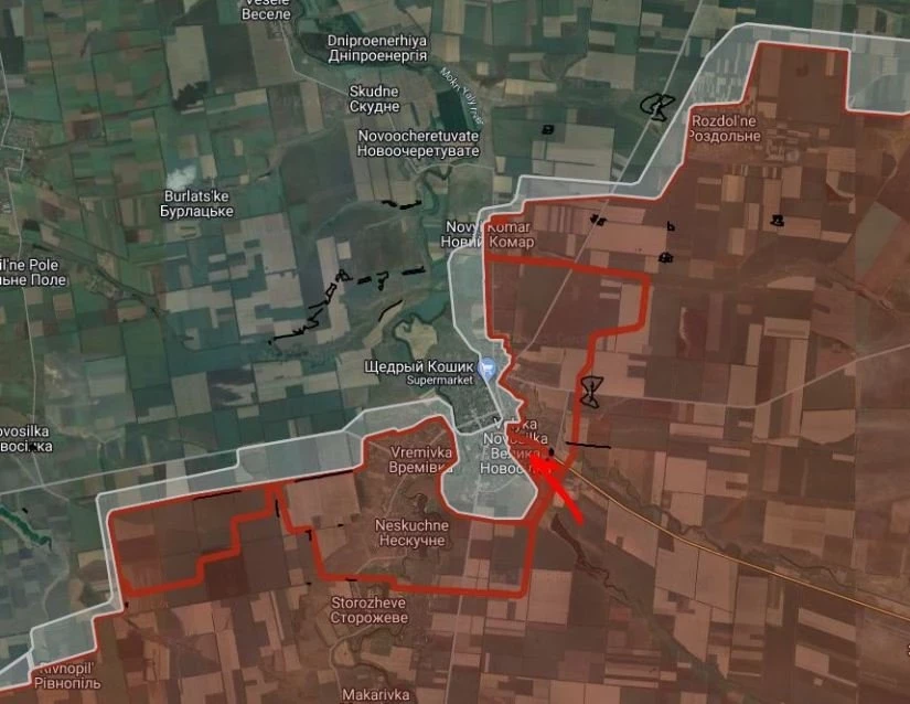 На Великоновосёлковском направлении российские войска продвинулись в восточной и юго-восточной частях Великой Новосёлки, продолжаются встречные бои.