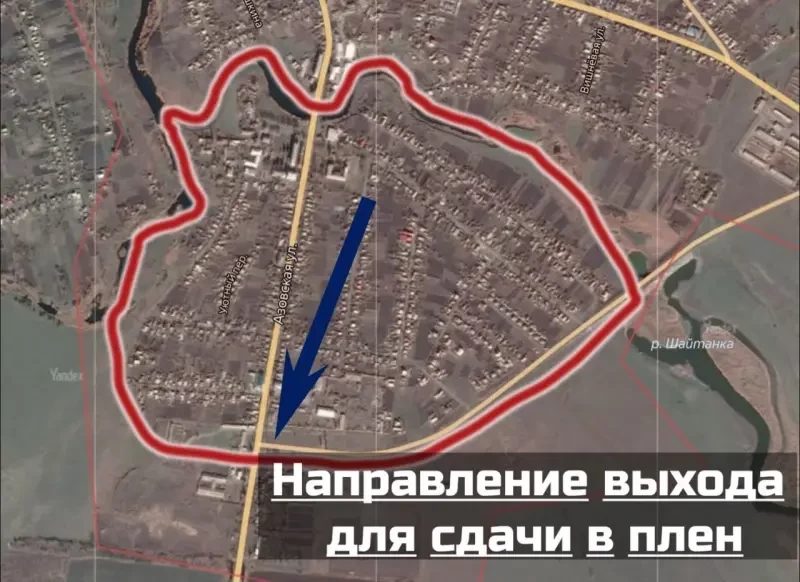 Для безопасного выхода вам предоставлен маршрут по ул. Азовская вниз по дороге в направлении Благодатное. Призываем военнослужащих бригады и их родственников придать ситуации максимальной огласку, распространять инструкцию по спасению и тем самым предпринять попытку сохранить жизнь себе или своим родственникам,
