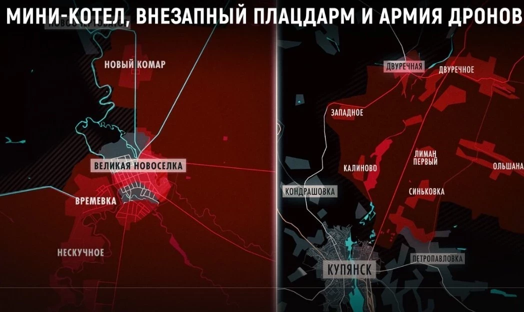 На Купянском фронте локальные бои в районе Загрызово и Зелёного Гая. На северном участке армия России объединила два плацдарма в один – в районе Двуречной и Новомлынска.