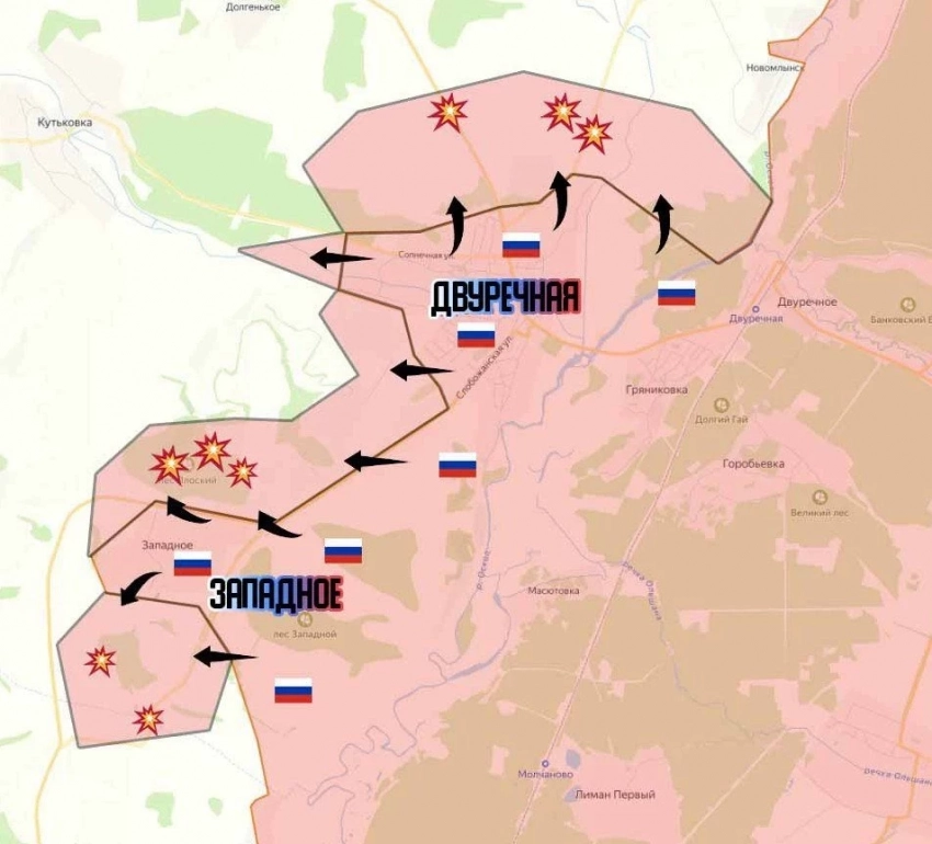 На Купянском фронте бои в районе Загрызово, Куриловка, Зеленый Гай - на южном фланге. Противник показал, что точка в Новоегоровке, об освобождении которой ранее сообщало МО РФ, находится под контролем ВСУ.