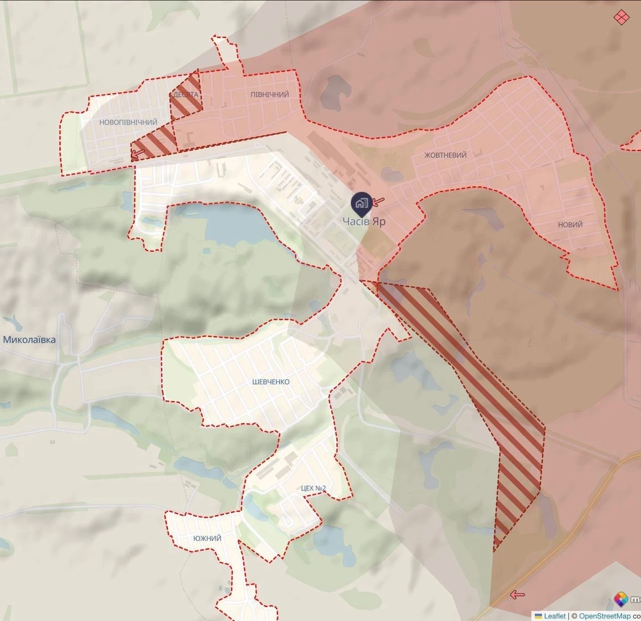 Украинским войскам пришлось отойти от стадиона - теперь русские имеют возможность продвинуться в микрорайон Шевченко и/или обойти его через Цех №2 огнеупорного завода.