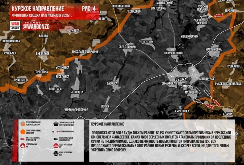 Карта боевых действий в Курской области на 08.02.2025