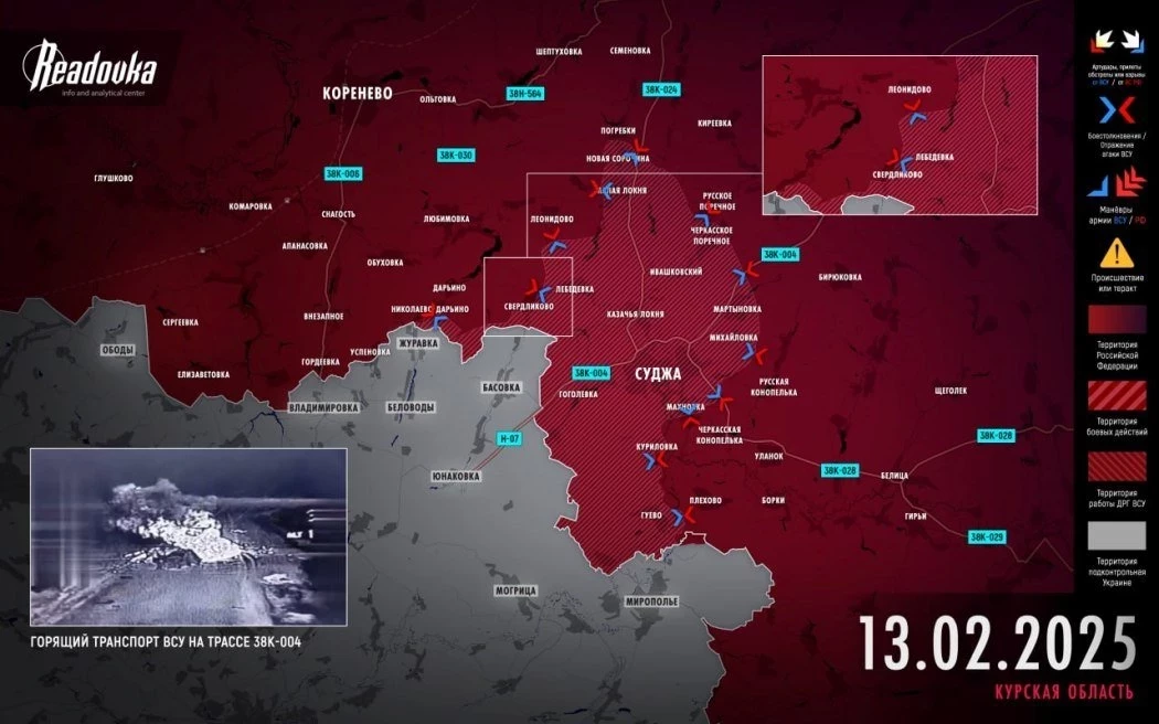 Новая карта боевых действий в зоне СВО на Украине на 14.02.2025
