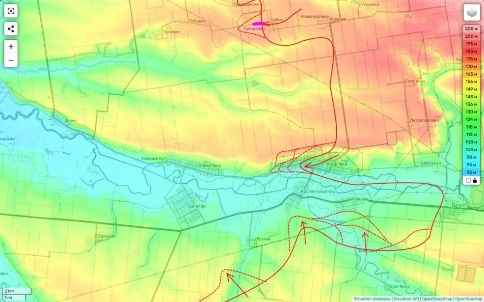 И эти оценки возникли не на пустом месте. Во-первых наши части взяли еще часть опорников линии обороны севернее Андреевки. А во-вторых, фронт боев уже плотно сместился к южным окраинам н.п. Улаклы и Константинополь. И наш прорыв здесь может захлопнуть мешок и сделать полуокруженцев окруженцами в любой момент.