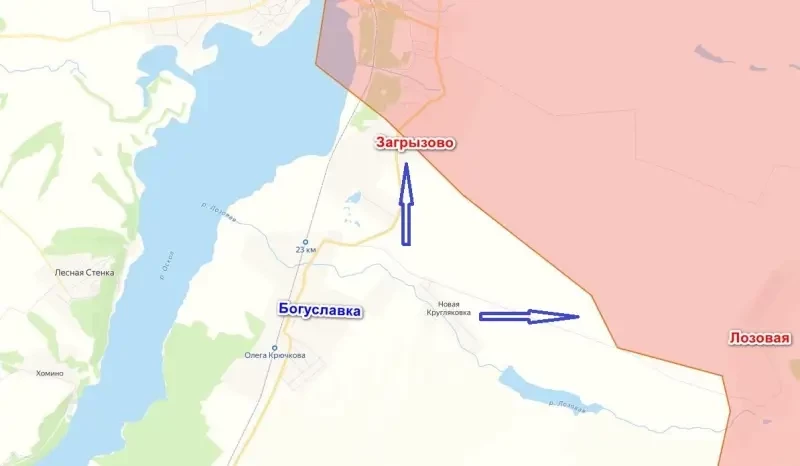 Украинские формирования, выбитые со своих позиций в ходе наступления российских войск на Богуславку, приняли решение вернуть их, проведя несколько контратак в направлении Загрызово и Лозовая. Несмотря на применение противником артиллерии и беспилотников, нашим удалось не только отразить контратаки, но и нанести большой урон наступающим. В общем, позиции наши удержали, противник откатился назад с потерями.