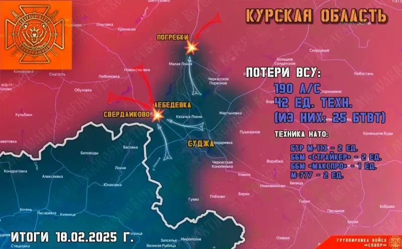 Согласно данным российского Минобороны, противник продолжает держать на Курском направлении формирования 14 бригад ВСУ и трех штурмовых полков, но в ближайшее время часть из них будет выведена в Сумскую область на пополнение в связи с большими потерями.