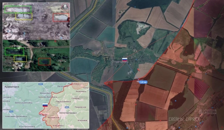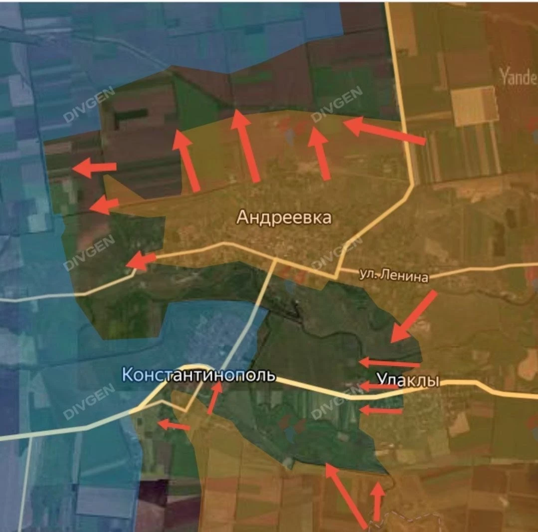 ▪️ Южнее Часов Яра, заявляют вражеские каналы, ВС России продвинулись широким фронтом от урочища «Ступки» до н.п. Курдюмовка на участке шириной до 8.5 км на глубину до 1.4 км и заняли оставшуюся часть н.п. Андреевка.