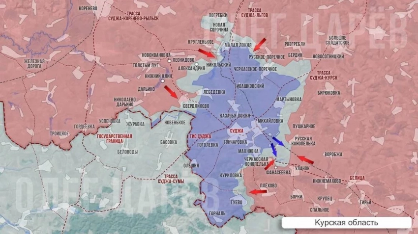 Российская армия продавливает оборону противника южнее Свердликово и Николаево-Дарьино, через госграницу по направлению к Новенькому. По неподтвержденным данным, нашим частям уже удалось зайти на окраину деревни. Атаку российских десантников активно поддерживает наша авиация. Но и ВСУ обороняет здесь каждый опорный пункт, стягивает силы на северной границе Басовки. Бои идут серьезные, так как потеря Новенького и Басовки означало бы для ВСУ утрату главной трассы снабжения Суджанской группировки.