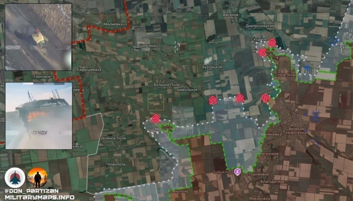 Идёт продвижение наших войск на север и запад от Великой (Большой) Новосёлки. Взяты Новосёлка и Новоочеретоватое.
