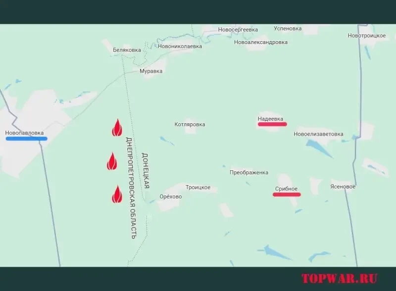 В частности, противник рефлексирует в связи с тем, что российские ТОС-1А «Солнцепёк» уничтожают создаваемые ВСУ укрепления на восточной границы Днепропетровской области. Так, с помощью ТОСов разбиты и выжжены линии укреплений к западу от ранее освобождённых Вооружённым силами России Серебряным и Надеждинкой. На этом участке фронта нашим осталось пройти до границы Днепропетровщины не более 3,4 км.