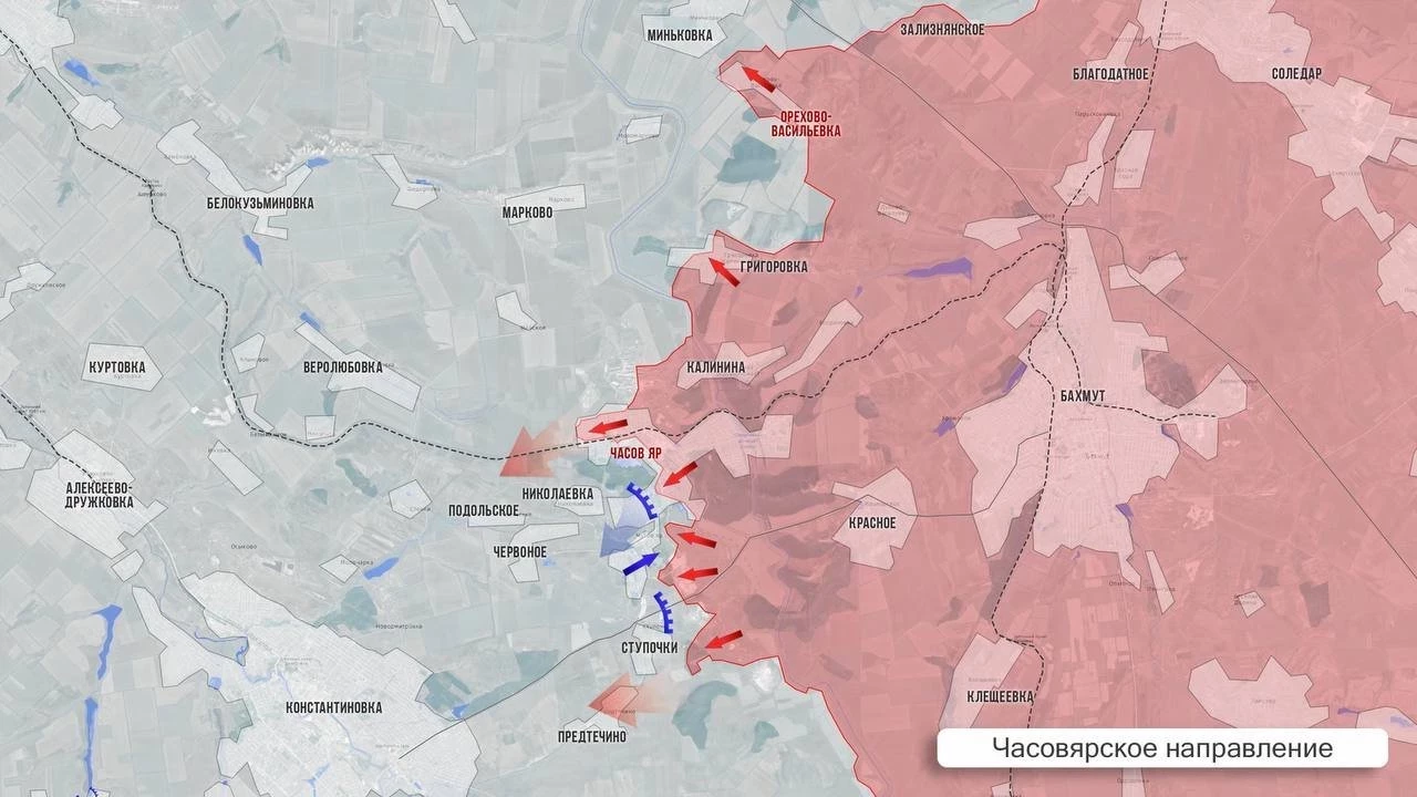 В Часов Яре позиционные бои. Более активное сражение происходит южнее, в районе Ступочек. Закрепиться на высотах в районе этого села критически важно, чтобы окончательно отрезать гарнизон ВСУ от Константиновки.