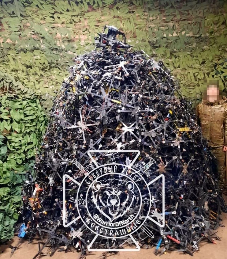 На опубликованном в посте снимке запечатлены нейтрализованные БПЛА, которые сложили в кучу. Военнослужащего сфотографировали рядом с горой дронов ВСУ. Ее высота в несколько раз превысила рост человека.