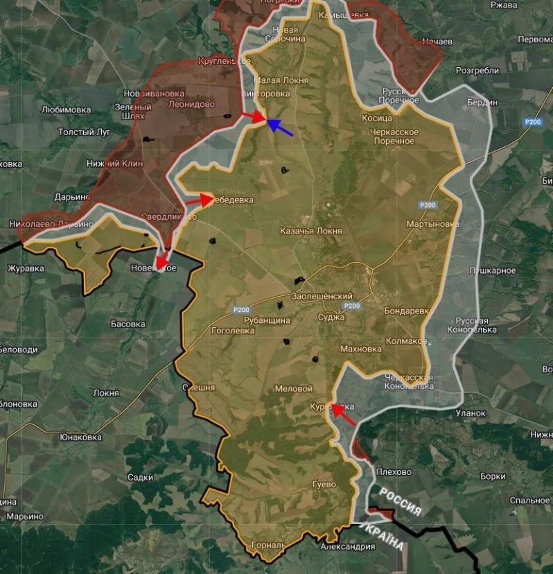 "В Курской области российские войска при поддержке бронетехники атакуют из района н.п. Свердликово в направлении н.п. Новенькое в Сумской области. Ситуация остаётся сложной", - жалуются ресурсы противника.