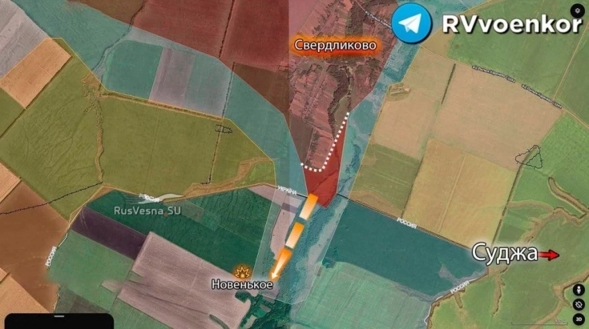 Поселок Новенькое расположен между Свердликово и дорогой из сумской Юнаковки в курскую Суджу - эту транспортную артерию командование ВСУ использует с первых дней вторжения как основу логистики для своей оккупационной группировки войск в Курском приграничье. Теперь этот путь под угрозой перерезания.