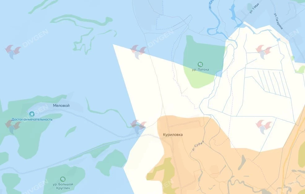 Из Курской области поступают сообщения о том, что российские войска продвинулись на глубину около 1,5 км к западу от Куриловки. Под контроль ВС РФ перешла значительная часть лесного массива между упомянутой Куриловкой и посёлком Меловой Суджанского района.