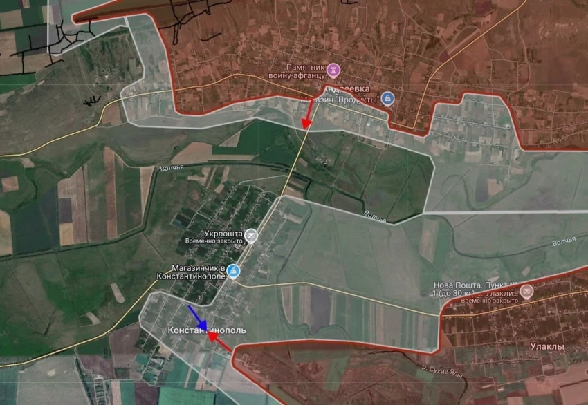 На Константинопольском направлении под контроль ВС РФ перешла Андреевка, продолжаются, встречные бои в Константинополе.