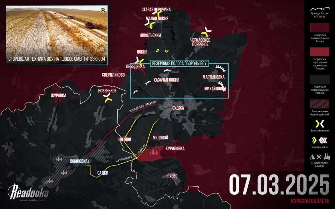С запада от Суджи наши десантные части продвинулись в Журавке, большая часть которой под нашим контролем. У Новенького россияне пока закрепляются для дальнейшего прорыва на Басовку.