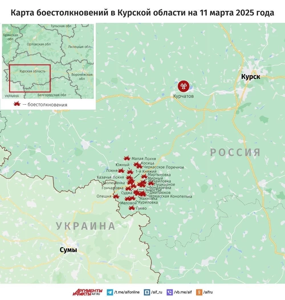 Свежая карта боевых действий в Курской области. Данные на сегодняшний день, 11.03.2025