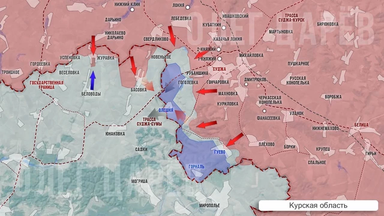 В Сумской области идут бои за Басовку. О том, что площадь Сумской области под контролем РФ уже сравнялась с площадью, которую ещё контролируют ВСУ в Курском приграничье, заявила сегодня депутат Рады Марьяна Безуглая.