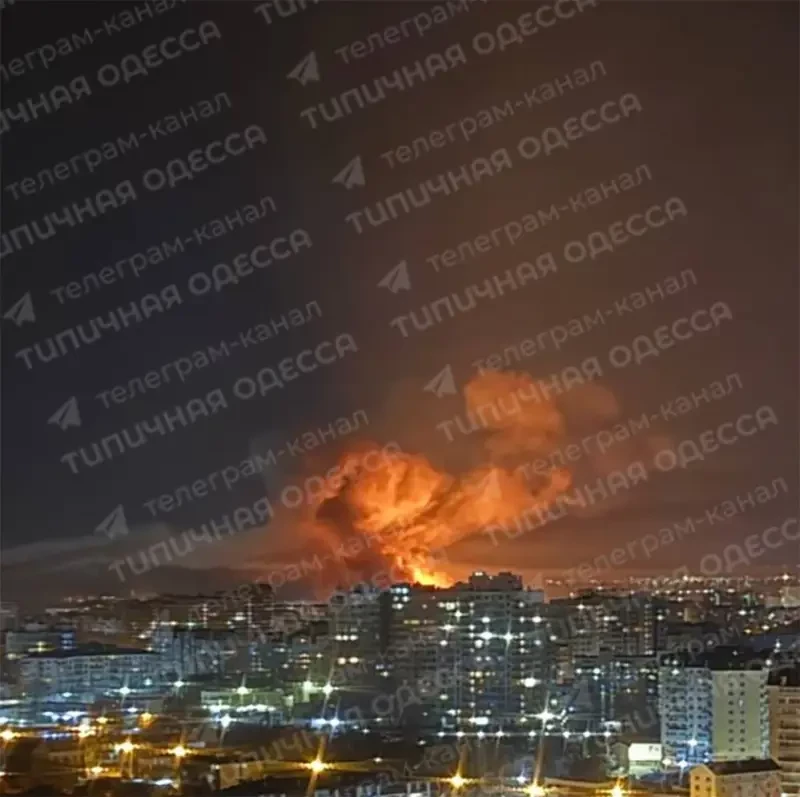 В результате попадания по военному складу в Одессе вспыхнул крупный пожар, который можно было видеть из различных частей города.