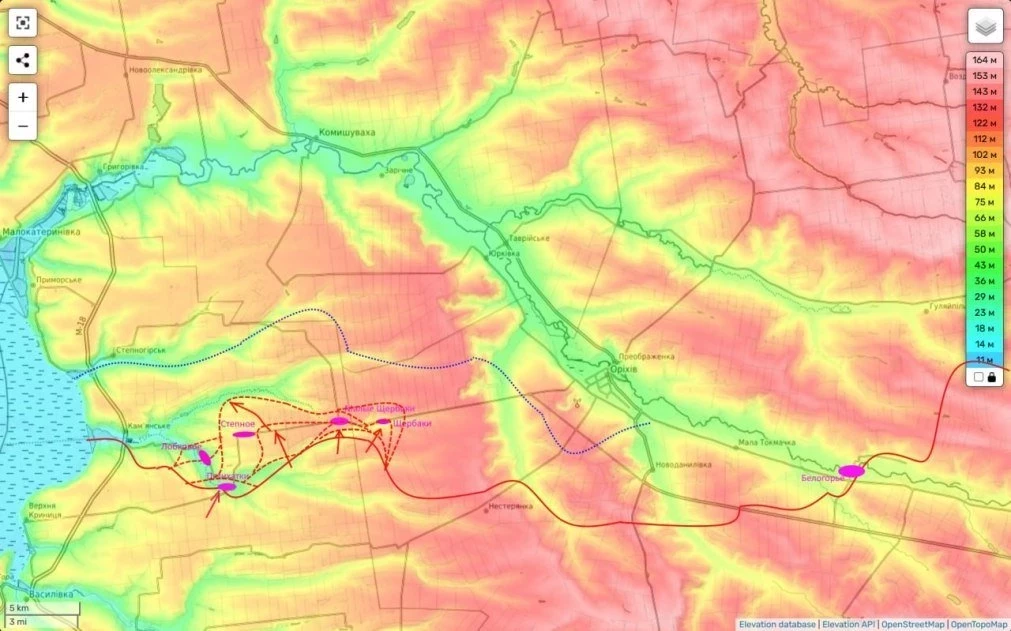 На Запорожском направлении по данным с мест противника окончательно выбили из села Лобковое. И так как Лобковое практически сливается с западными окраинами Каменского, бои постепенно смещаются туда.