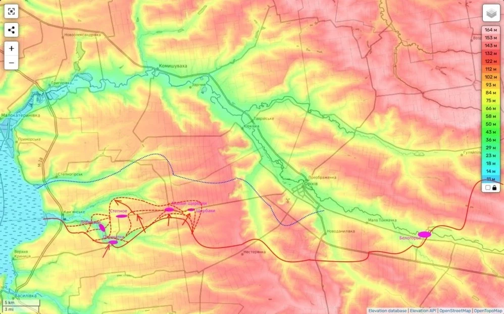 В свою очередь на Запорожском направлении российские части сосредоточились для штурма Каменского. Крупного села на побережье бывшего Каховского водохранилища, не взяв которого идти дальше на север было бы рискованно.
