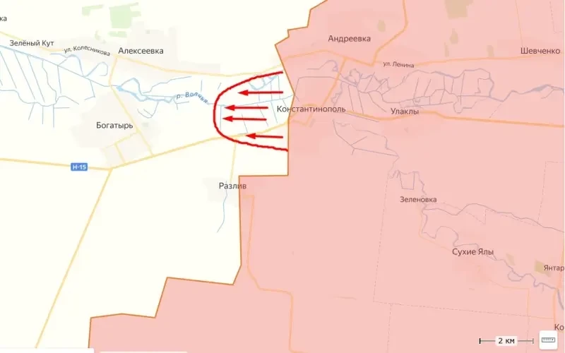 Так, ряд российских околовоенных ТГ-каналов сообщает, что наши штурмовые подразделения за последние сутки существенно продвинулись от населённого пункта Константинополь в направлении села Богатырь на Кураховском участке.