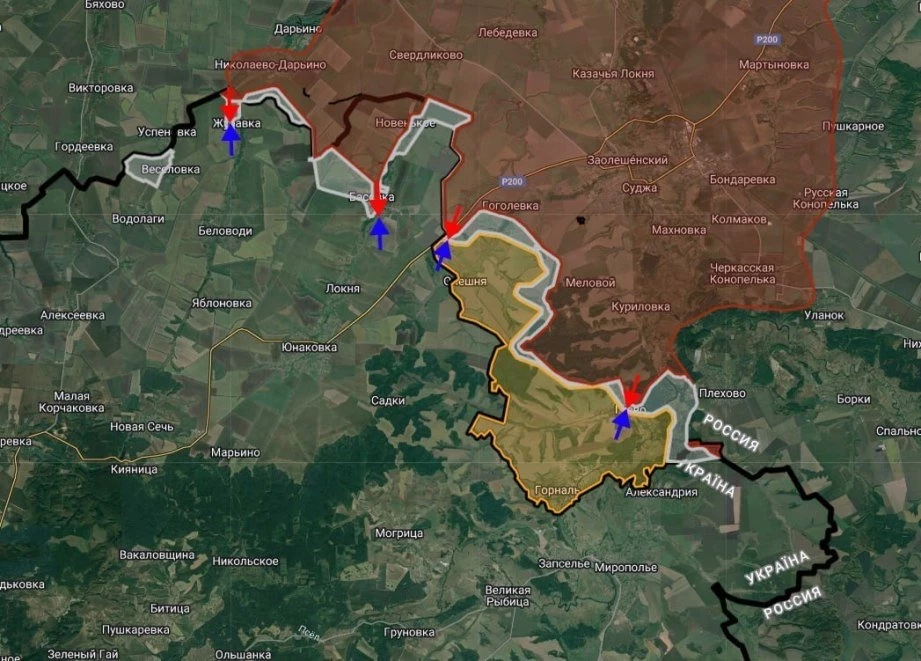 «ВС РФ закрепились у балки Бабак к востоку от Олешни, а в Гуево идут бои за центральную часть», - отмечает канал.