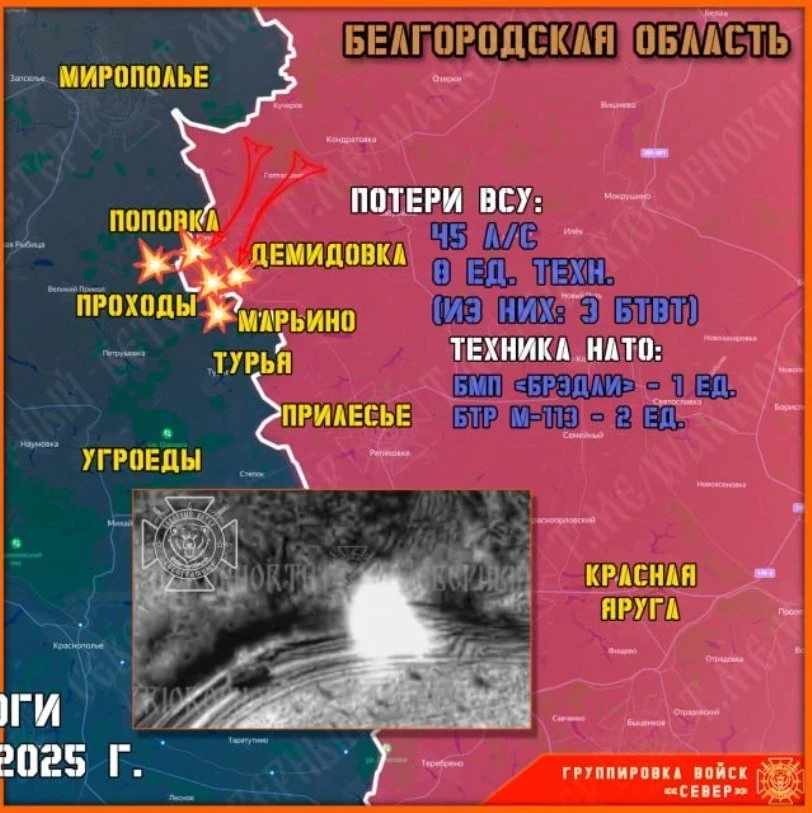 Анализ некрологов в соц.сетях и допросы военнопленных показали, что в Краснояружском приграничье Бесстрашные уничтожили большую часть личного состава 2-го батальона 225 ошп. Это подразделение было укомплектовано преимущественно кадровыми ВСУшниками, проходившими обучение за рубежом и переведенными в полк из других формирований украинской армии.