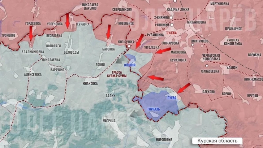В Курской области идут ожесточённые бои в Гуево и Олешне: карта боевых действий на 07.04.2025
