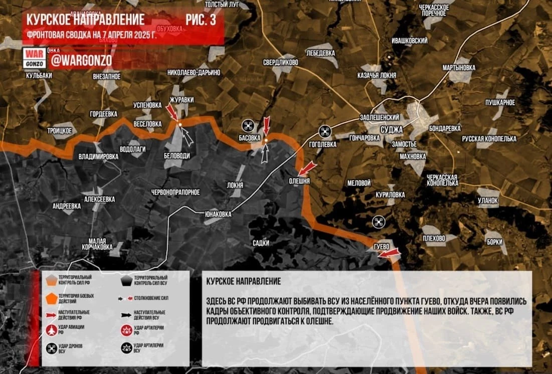 Обновлённая карта боевых действий на Украине по данным на сегодня, 07.04.2025: фронтовая сводка СВО