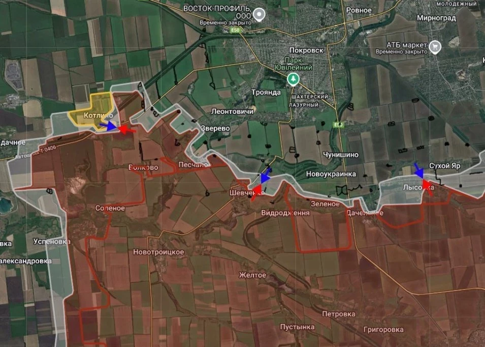 На Покровском направлении сообщают о возросшем темпе боёв в Удачном, Котлино, Песчаном и Зверево. ВС РФ усиливают натиск, но противник пока удерживает занятые позиции. В Лысовке очень активные бои у северных окраин. Южнее не снижается градус сражения в районе Котляровки–Троицкого. Противник удерживает контроль над Котляровкой, однако ВС РФ продавливают оборону на подступах. В Троицком за сутки ВС РФ продвинулись на 100 м, ВСУ оказывают ожесточённое сопротивление, сообщает Олег Царёв.