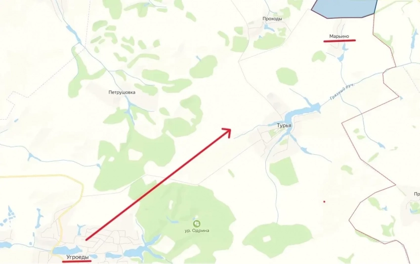 Украинские военные выдвинули колонну бронетехники из поселка Угроеды в направлении Марьино. Враг отправил в сторону Белгородской области танк, БРЭМ и две бронемашины Bradley. Передвижение противника обнаружила российская воздушная разведка.