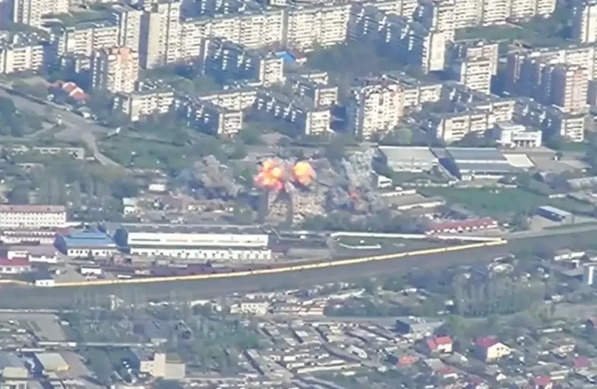 Российские дроны засняли момент точного попадания 4-х российских ФАБов по объекту ВСУ в Херсоне