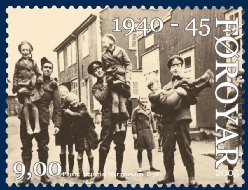 Фарерская почтовая марка 2005 г. — британские и канадские военные — союзники СССР на Фарерах, 1941 г.