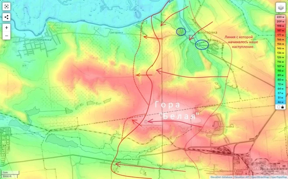Пока западный отрог горы Белой не будет под нашим устойчивым контролем, это не имеет смысла. Но если контроль над этими отрогами полностью перейдет к нам, то уже противнику не будет смысла держаться не только в Григорьевке, но и в Серебрянке.